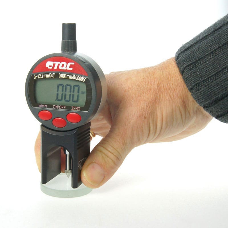 The TQC surface profile roughness gauge is a simple instrument for ultrafast measuring of the point peak-to-valley height of a surface. The shape of the base makes this instrument ideal to measure the height of welds. Technical Specifications Range : 0~3,4 mm / 0~0.13 inch Resolution : 1µm / 0.04 mil Accuracy : ± 5µm / 0.2 mil Thread : M2.5 x 0,45 Holder dia. : 20 mm / 0.79 inch Battery : Type LR44 1.5 V AVAILABLE TO ORDER